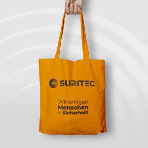 Hochwertiger Siebdruck auf ORANGENER (ca. HKS 7) Baumwolltasche
