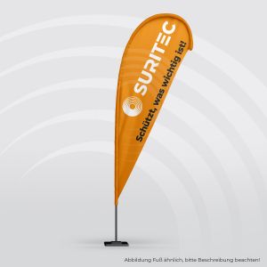 Beachflag Drop Medium, 4/4-farbig bedruckt inkl. Gestänge und Kreuzfuß+Wassertank